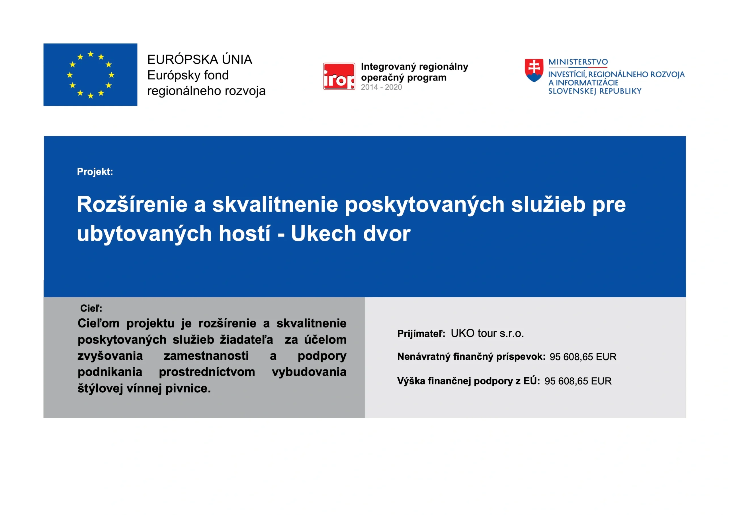 Firma UKO tour s. r. o. chce ponúknuť možnosť jedinečného ubytovania, v ktorom hostia nielen prenocujú a strávia príjemný čas v impozantnom prostredí, ale taktiež sa môžu pomocou rôznych aktivít vrátiť do čias skorších a uvedomovať si významy tradičnej ľudovej kultúry.
